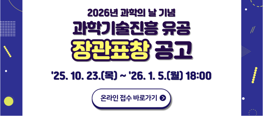 ※ 접수방법 : 온라인 접수(https://minister.kofst.or. ※ 추천기한 : 2026. 1. 5.(월) 18:00 ※ 문의처