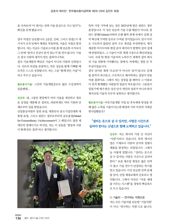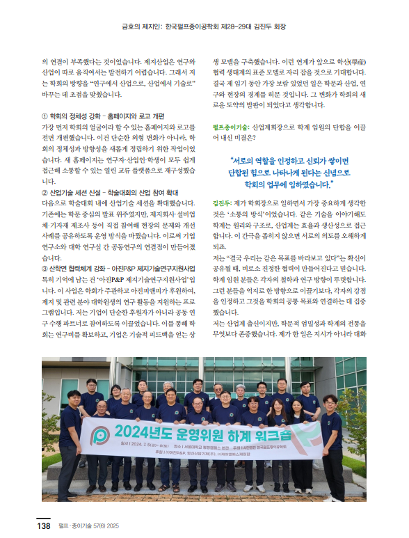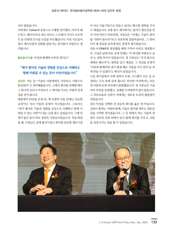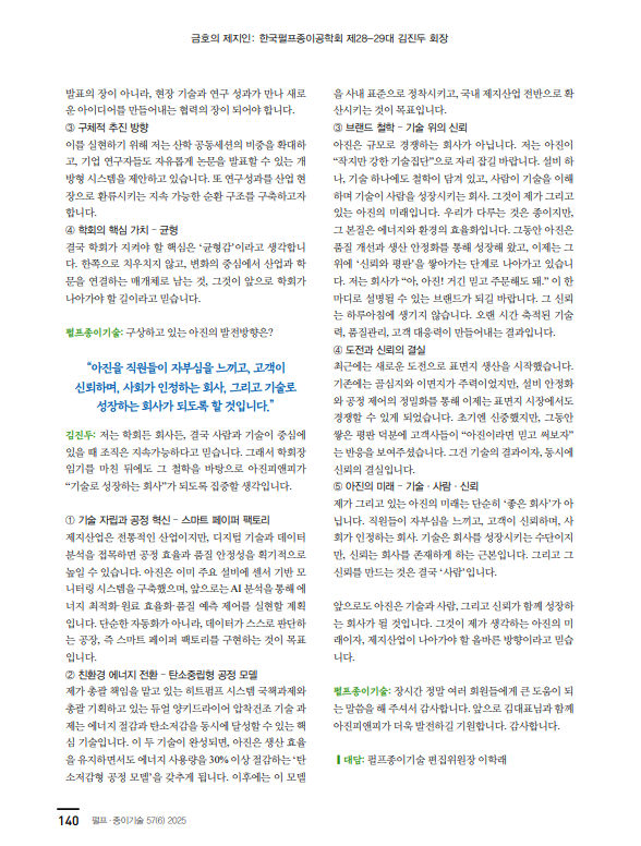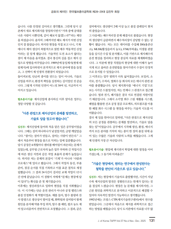 제지인 인터뷰 10호: 한국펄프종이공학회 제28-29대 김진두 회장