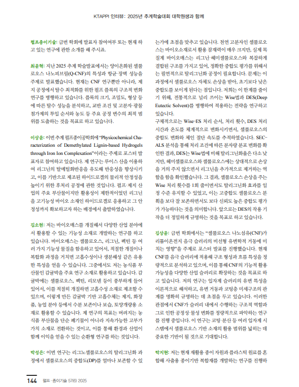 KTAPPI 그룹 인터뷰 8호 : 2025년 추계학술대회 대학원생과 함께