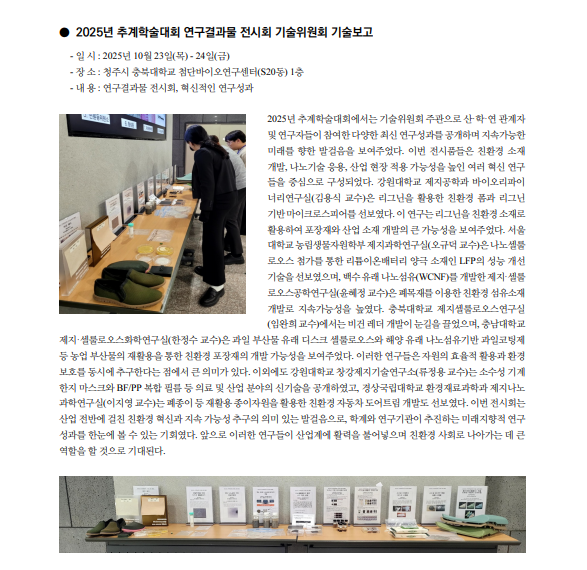 2025년 추계학술대회 연구결과물 전시회 기술위원회 기술보고