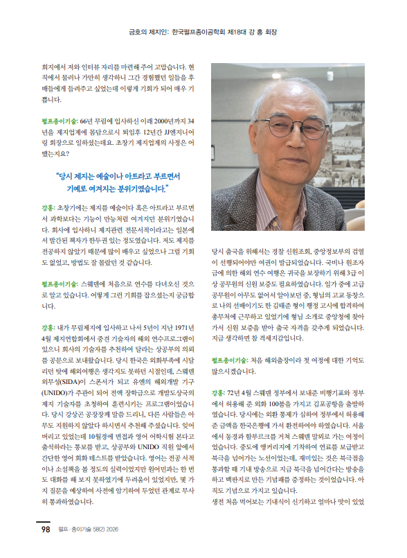제지인 인터뷰 12호: 한국펄프종이공학회 제18대 강 홍 회장