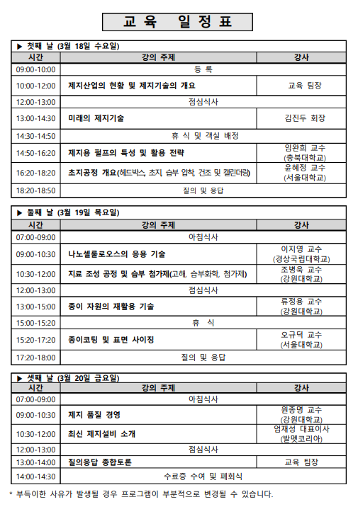 • 주제: 제지기술인을 위한 핵심 역량강화(총괄교육) 과정